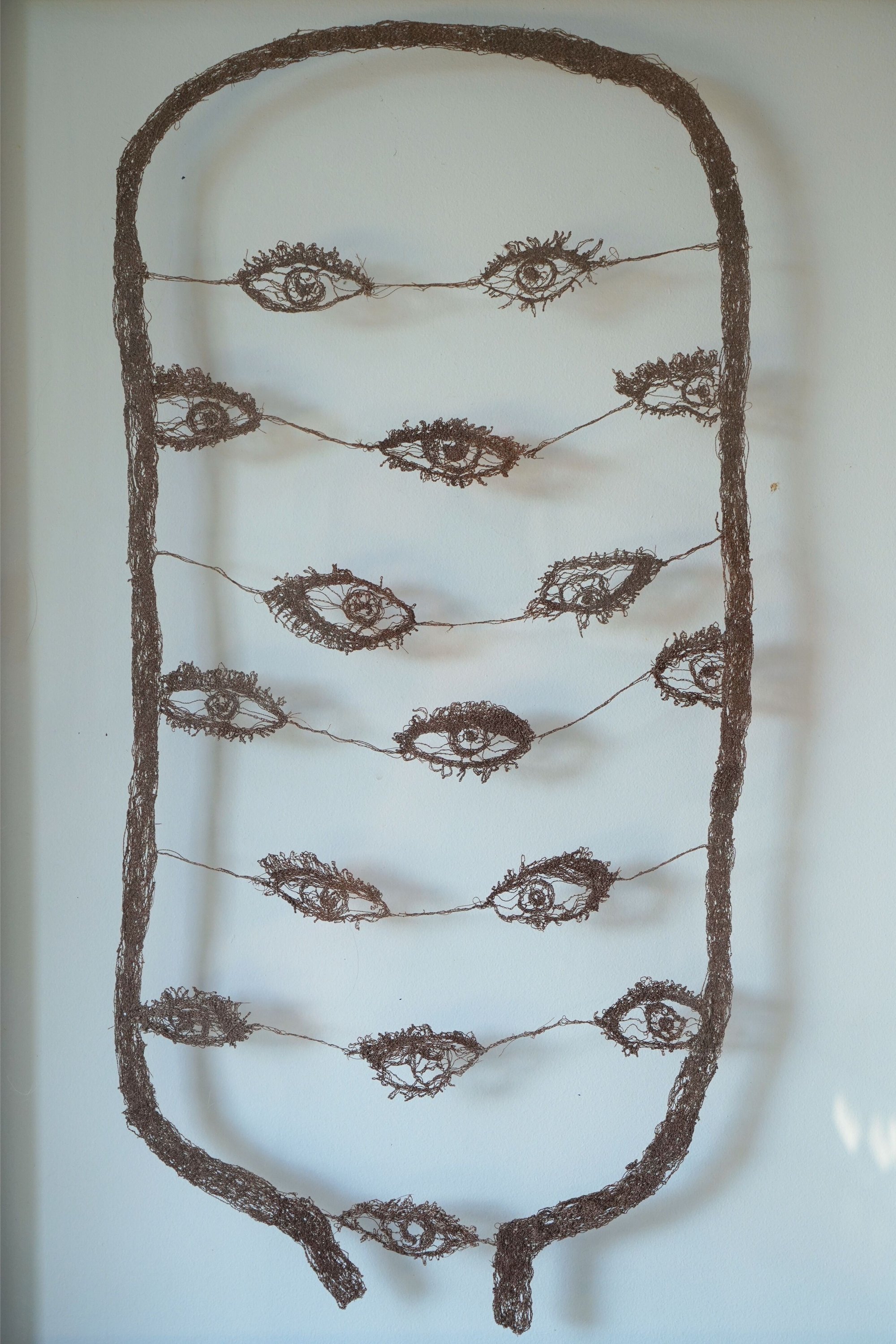 La répétition du motif de l’œil agit comme une incantation visuelle. Chaque point de fil, chaque nuance de lumière, devient un battement, une respiration.